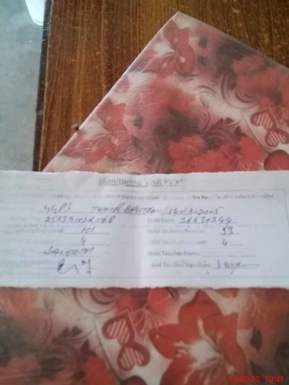 | Attendance Register | Head Teacher | MEA with School | Visit Proof |