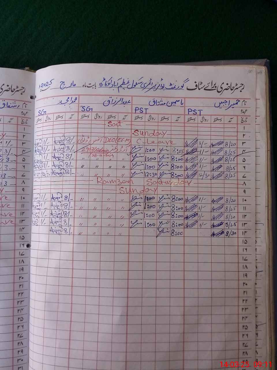 | Name: Mu**** Ir**** Designation: (School Headmaster's/Headmistress's) PST Phone/Cell Number: 03**** |