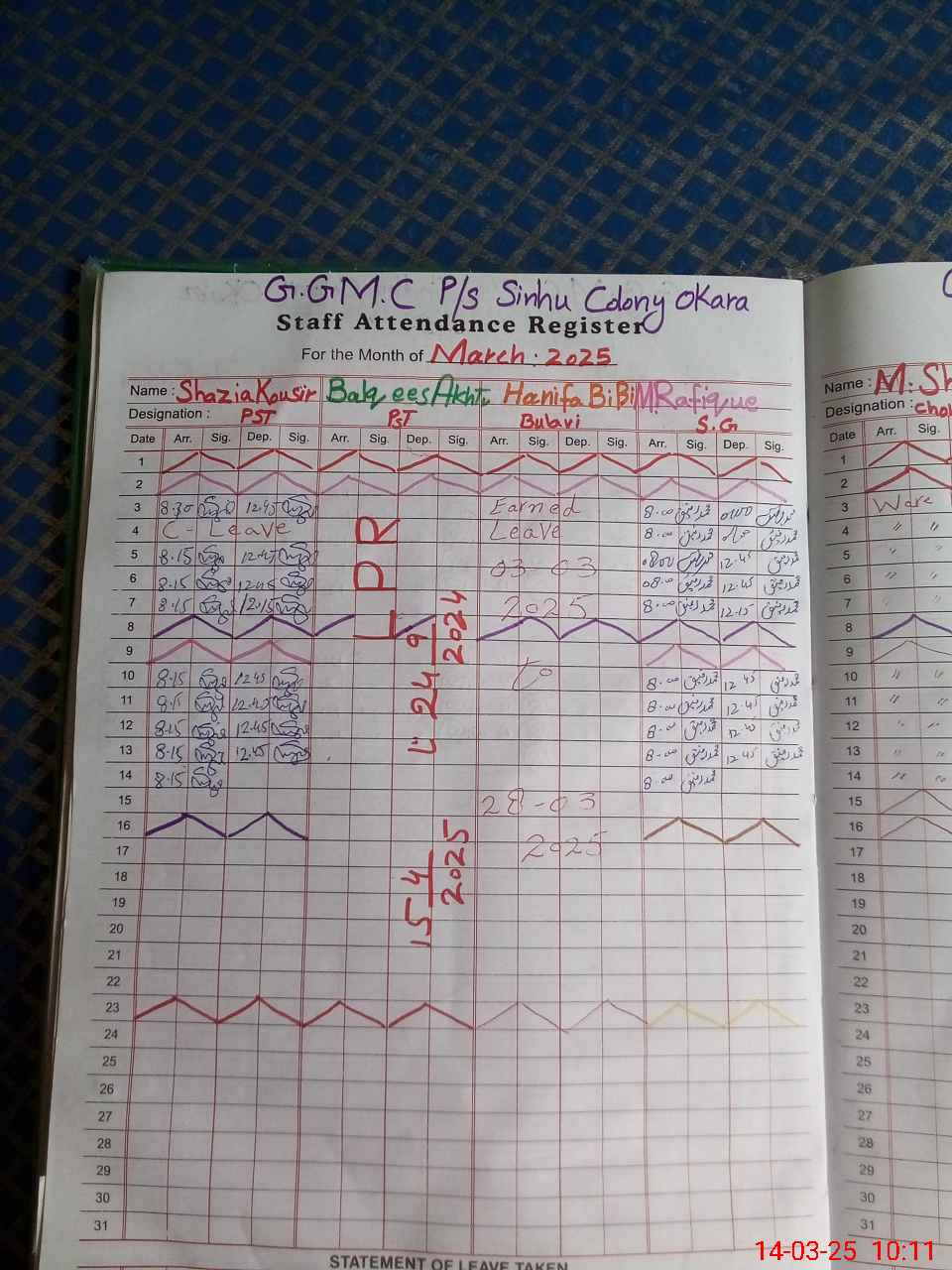 | Leave | Duty | Absent | Maternity | Medical | Ex- Pak |