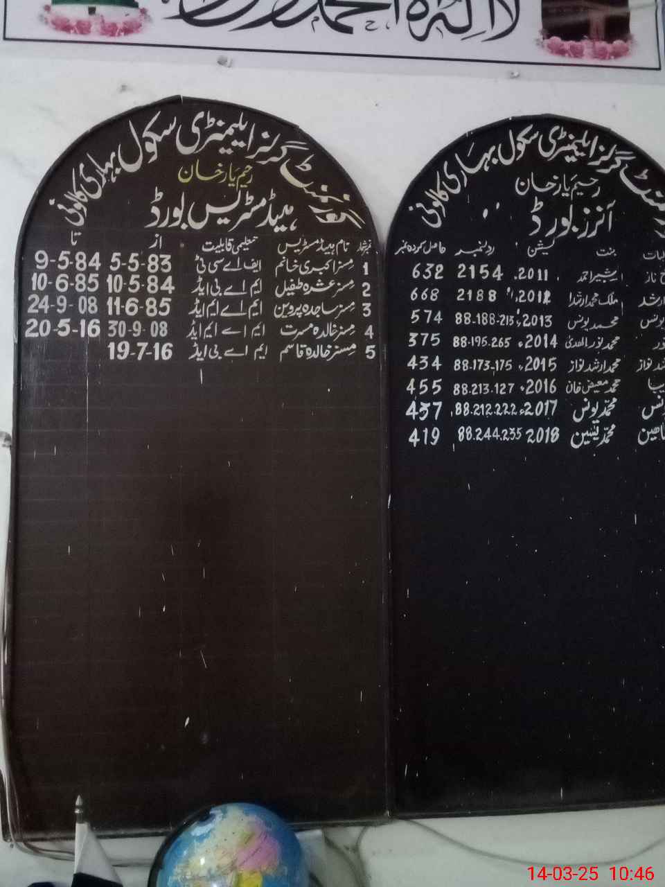 | Name: Uz**** Ra**** Designation: (School Headmaster's/Headmistress's) Head Mistress Phone/Cell Number: 03**** |