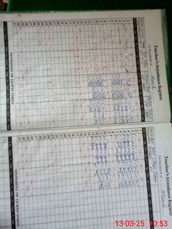| 31**** | Su**** Ya**** | 1 | 0 | 0 | 0 | 0 | 0 | 0 | 0 | 0 | 0 | Exam Duty | |