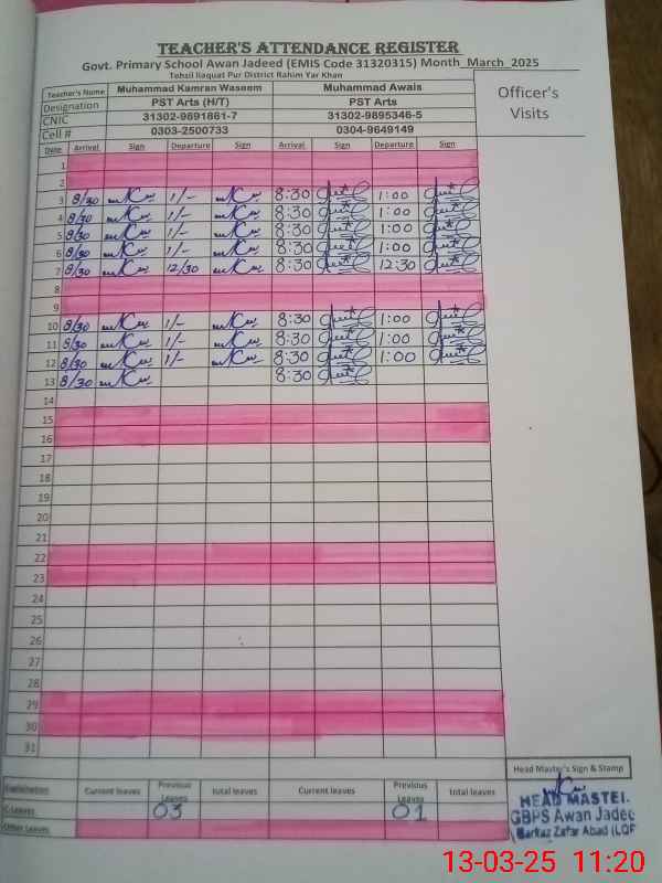 | EMIS Code: 31320315 | Name of School: GPS AWAN JADEED | |||