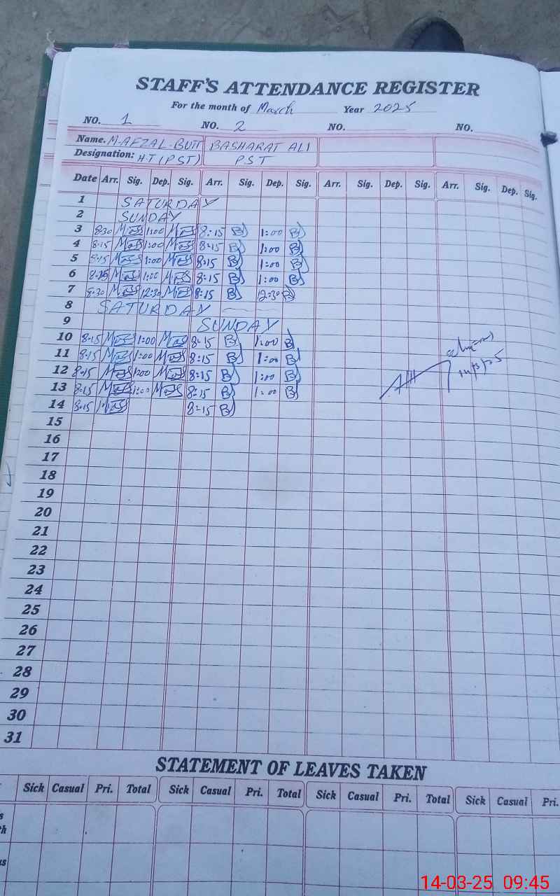 | Name: MAF**** BU**** Designation: (School Headmaster's/Headmistress's) PST Phone/Cell Number: 03**** |
