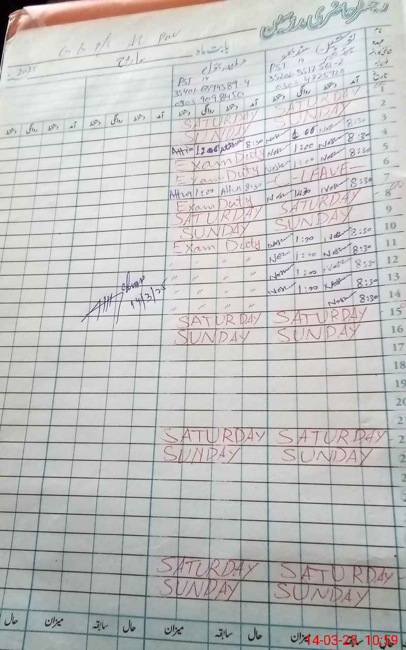 | 35**** | At**** Ba**** | PST | Regular | 0 | 0 | 0 | 0 | 0 | 0 | 0 | 0 | 0 | Exam Duty |