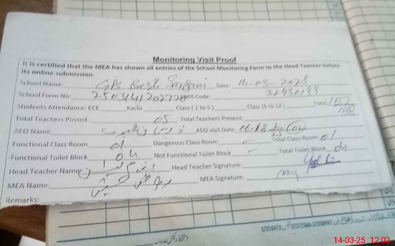 | EMIS Code: 32430199 | Name of School: GPS BASTI SARGANI | |||