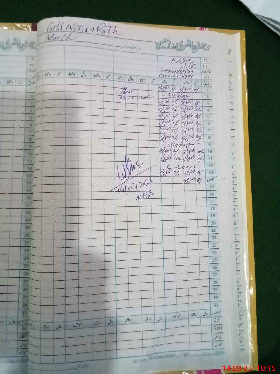 | EMIS Code: 39220018 | Name of School: GHS NOORA RATH | |||