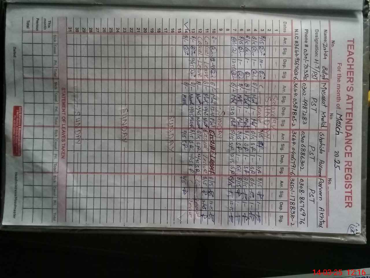 | Name: Za**** Ba**** Designation: (School Headmaster's/Headmistress's) PST Phone/Cell Number: 03**** |
