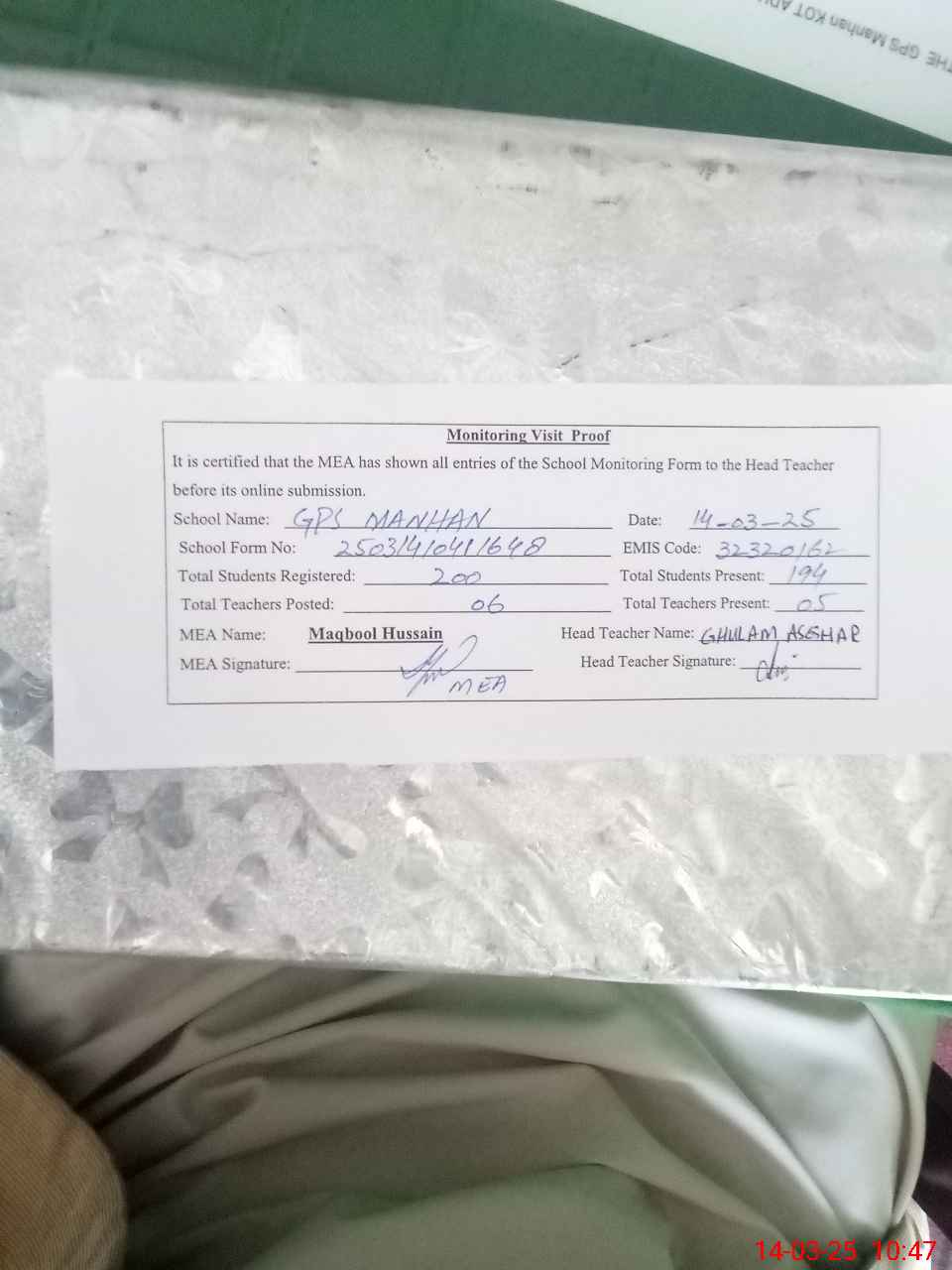 | EMIS Code: 32320162 | Name of School: GPS MANAH | |||