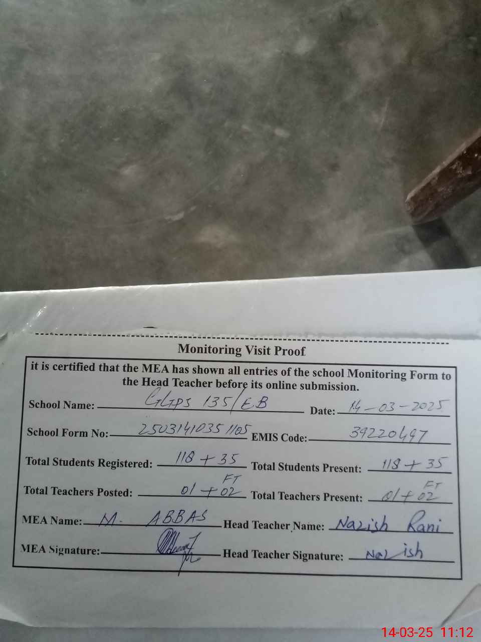| EMIS Code: 39220497 | Name of School: GGPS 135/EB | |||