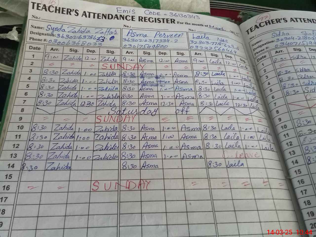 | Name: ZA**** ZA**** Designation: (School Headmaster's/Headmistress's) INCHARGE Phone/Cell Number: 03**** |