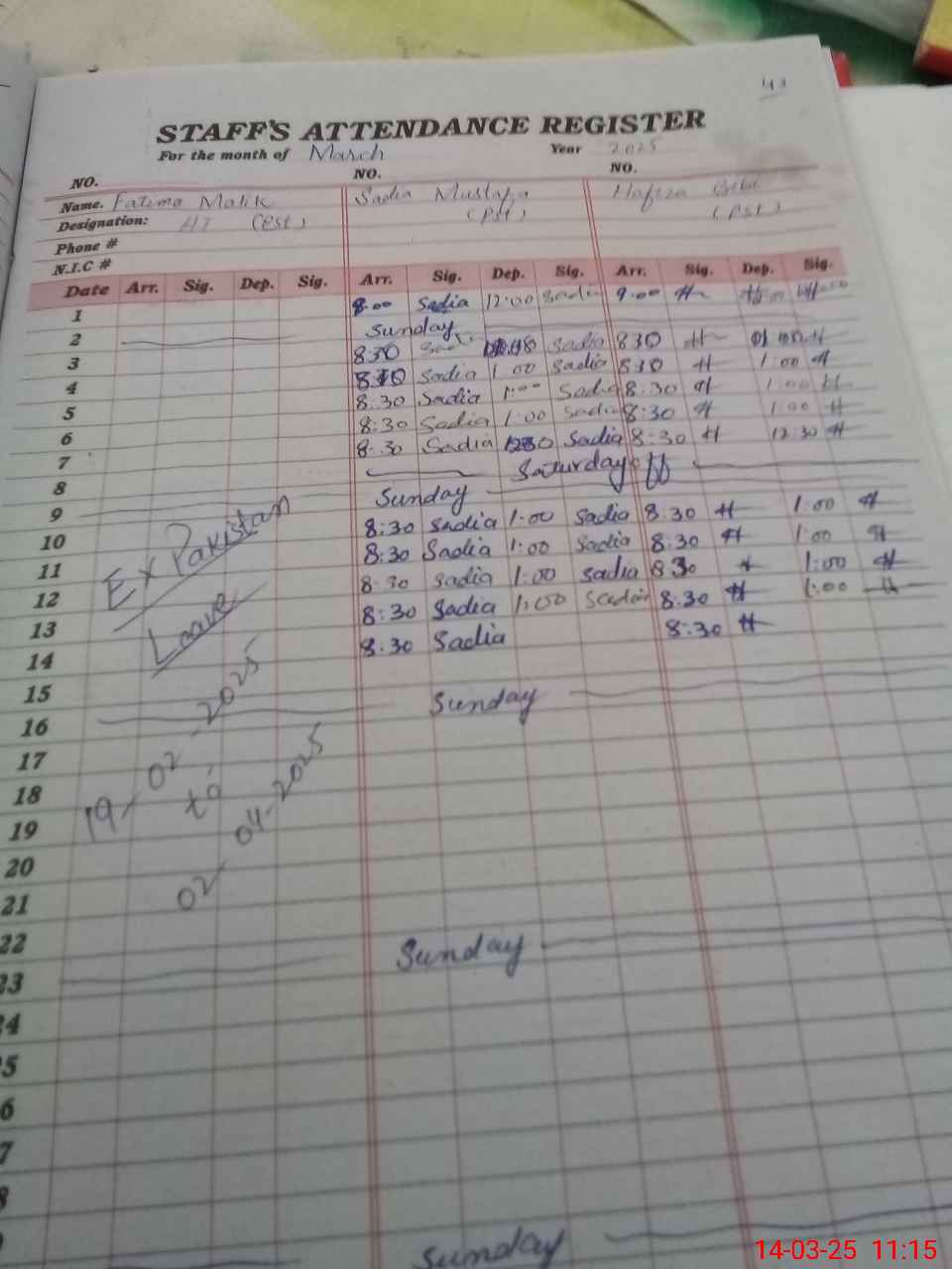 | 32**** | Ni**** Az**** | PST | Temporary | 0 | 0 | 0 | 0 | 0 | 0 | 0 | 0 | 0 | Absent (Un-Authorized) |