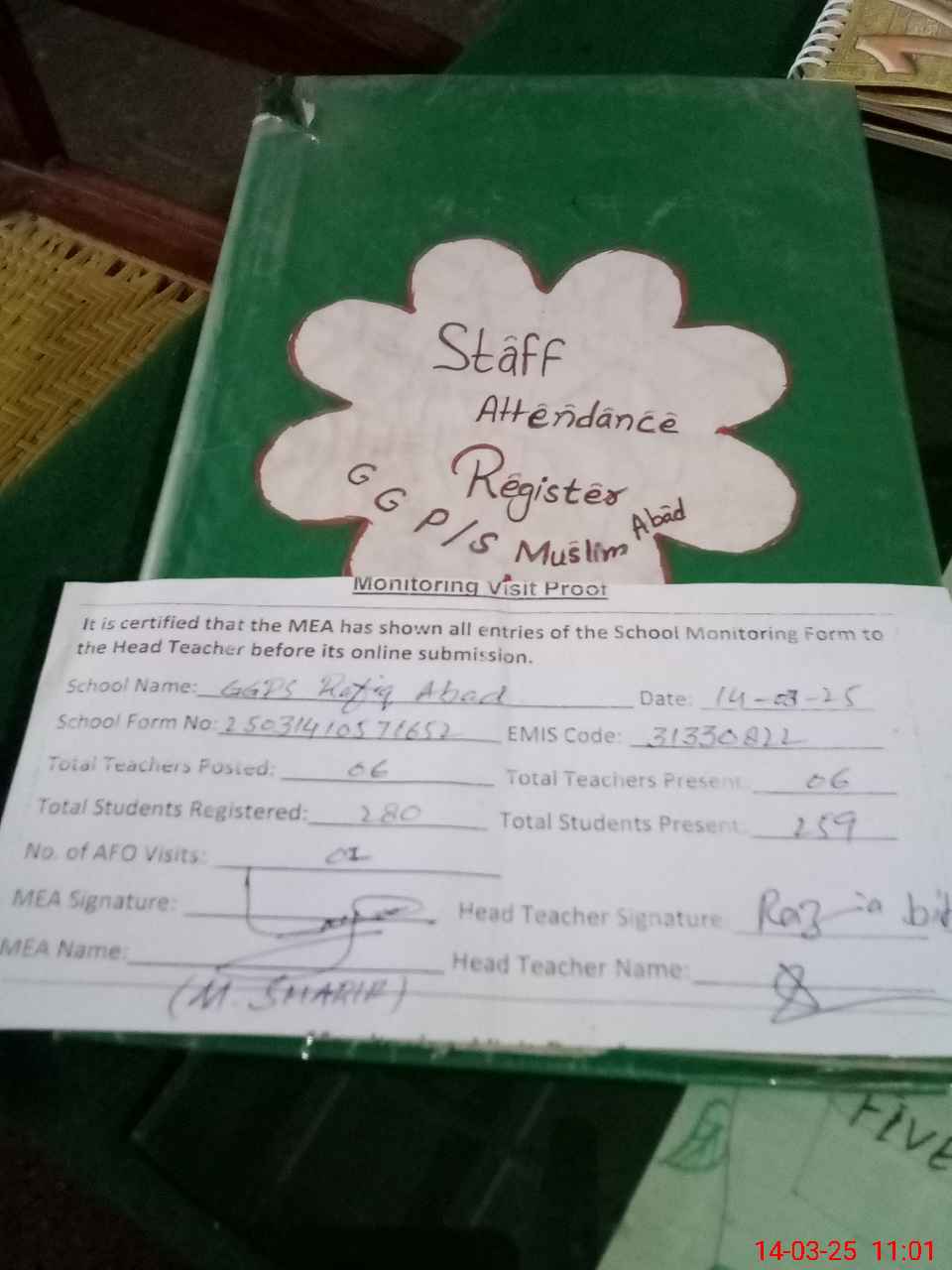 | EMIS Code: 31330822 | Name of School: GGPS MUSLIM ABAD NEW RAFEEQ ABAD | |||