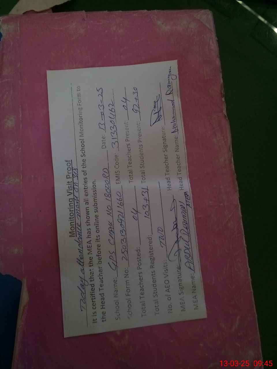 | EMIS Code: 31330462 | Name of School: GPS CHAK NO.18000/RD | |||