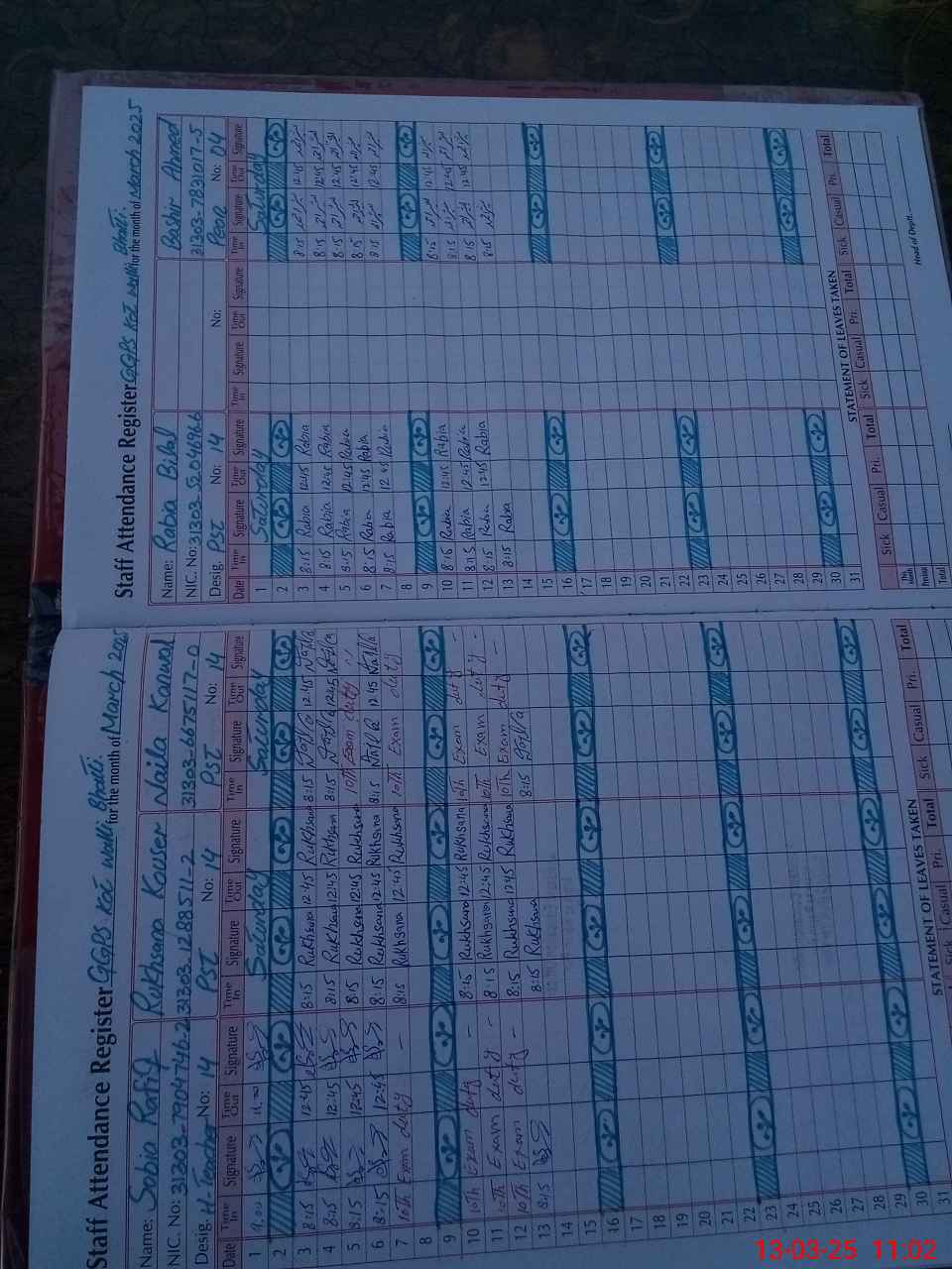 | CNIC | Full Name | Designation | R/C | Absence During Last Calender Month |