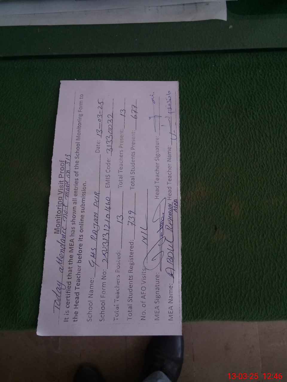 | EMIS Code: 31330032 | Name of School: GHS RAJAN PUR KALAN | |||