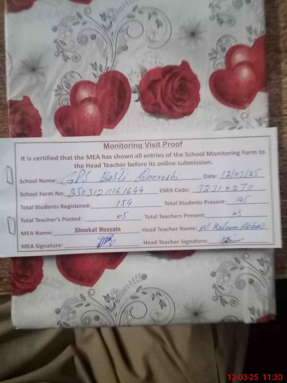 | EMIS Code: 32310270 | Name of School: GPS BASTI QURESHI | |||