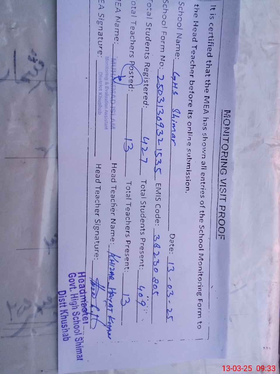 | EMIS Code: 38230805 | Name of School: GHS SHIMAR | |||