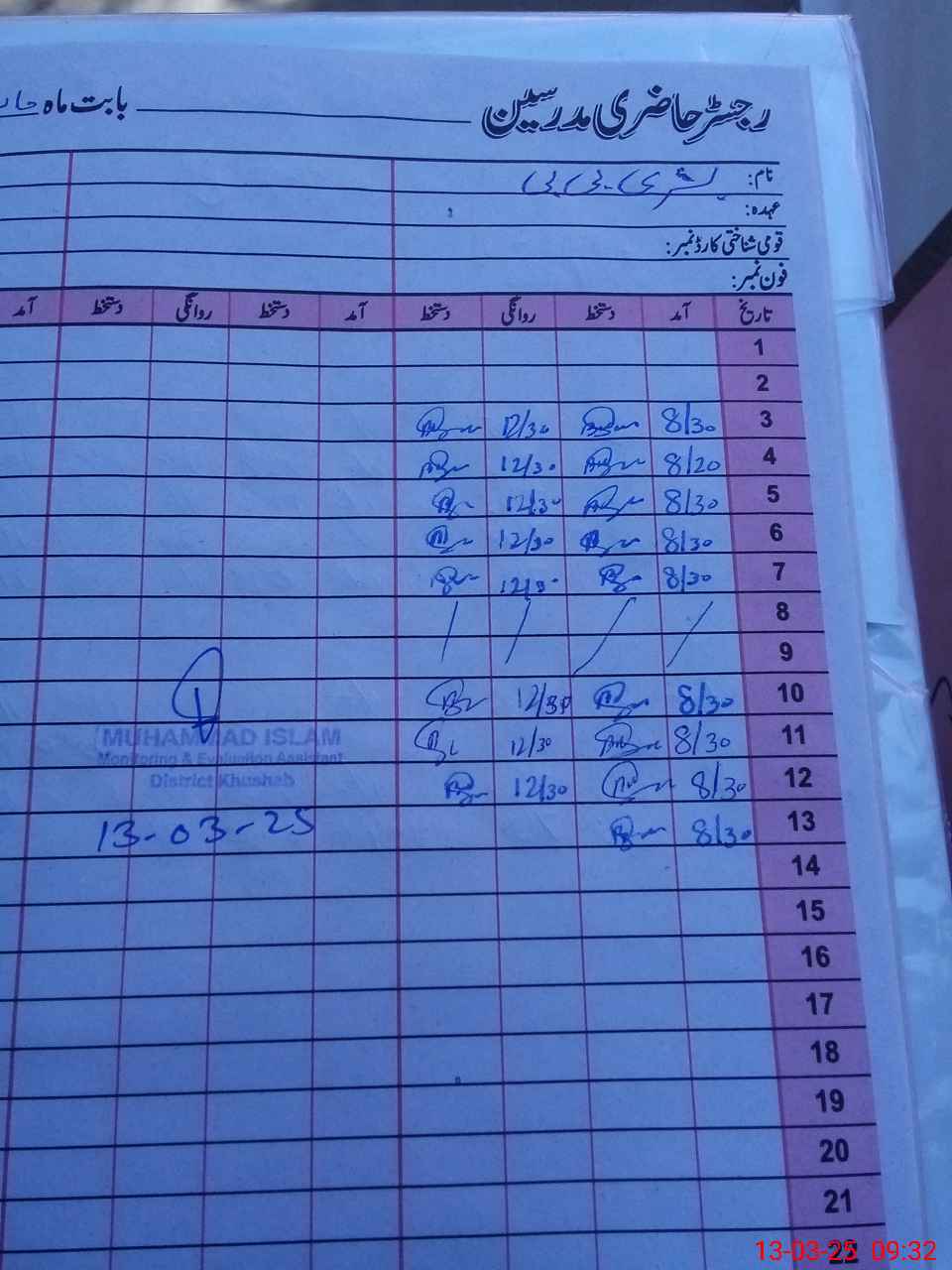 | Name: Mu**** Sh**** An**** Designation: (School Headmaster's/Headmistress's) HM Phone/Cell Number: 03**** |