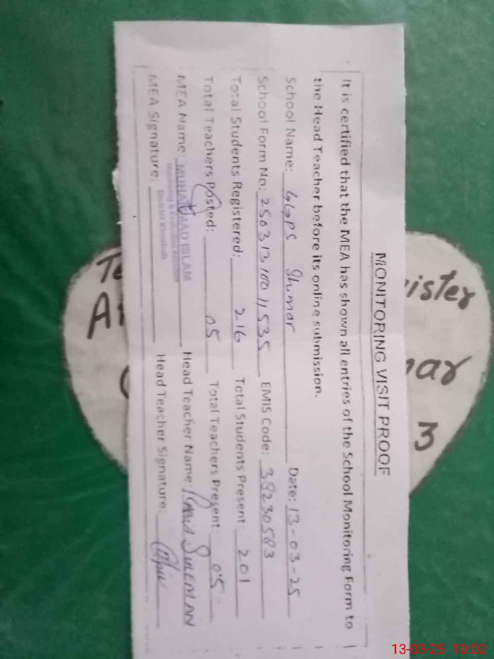 | EMIS Code: 38230583 | Name of School: GGPS SHIMAR | |||