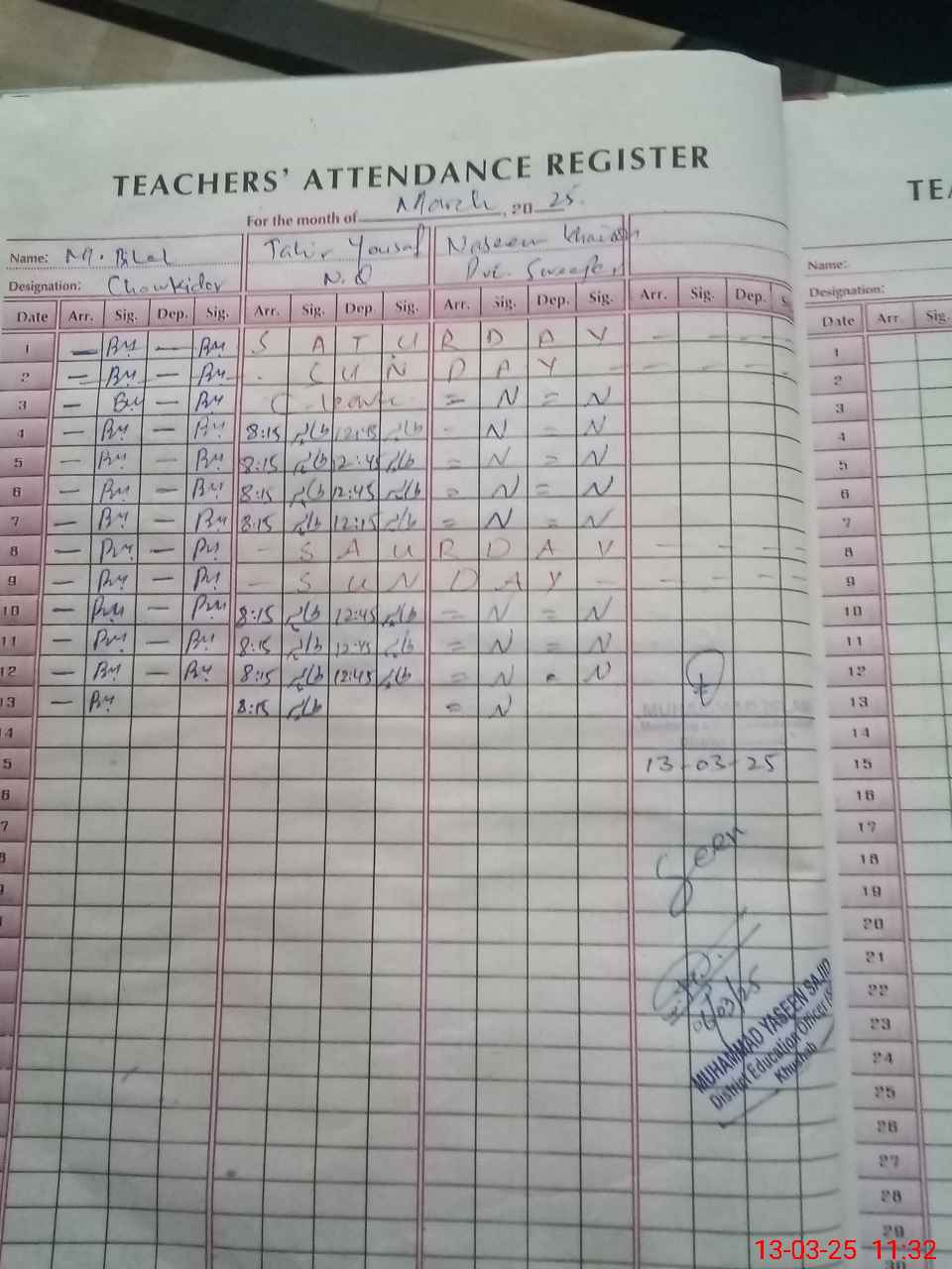 | Name: Ta**** aHu**** Sh**** Designation: (School Headmaster's/Headmistress's) Headmistress Phone/Cell Number: 03**** |
