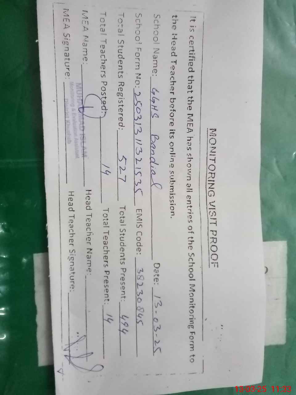 | EMIS Code: 38230845 | Name of School: GGHS BANDIAL | |||