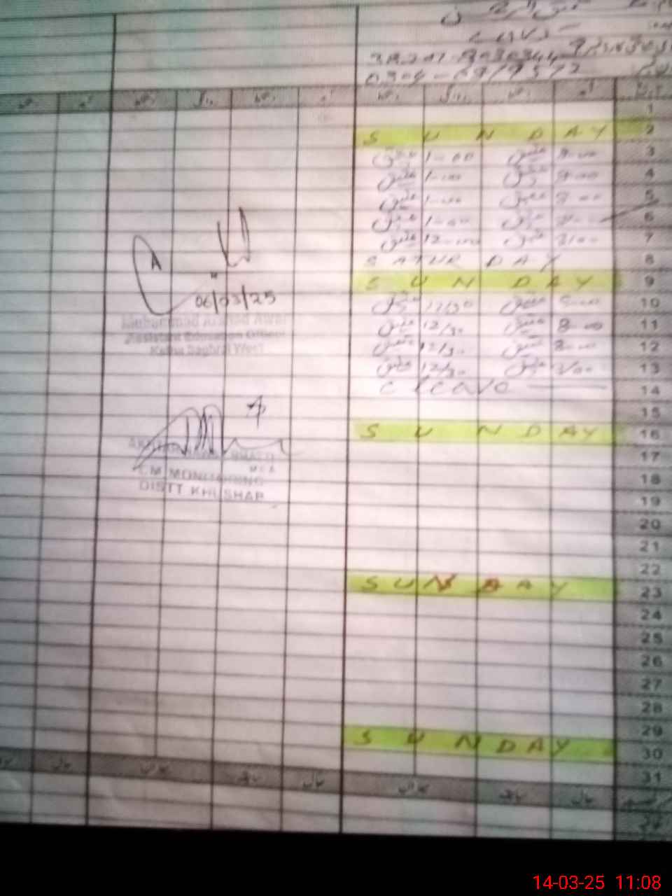 | CNIC | Full Name | Designation | R/C | Absence During Last Calender Month |