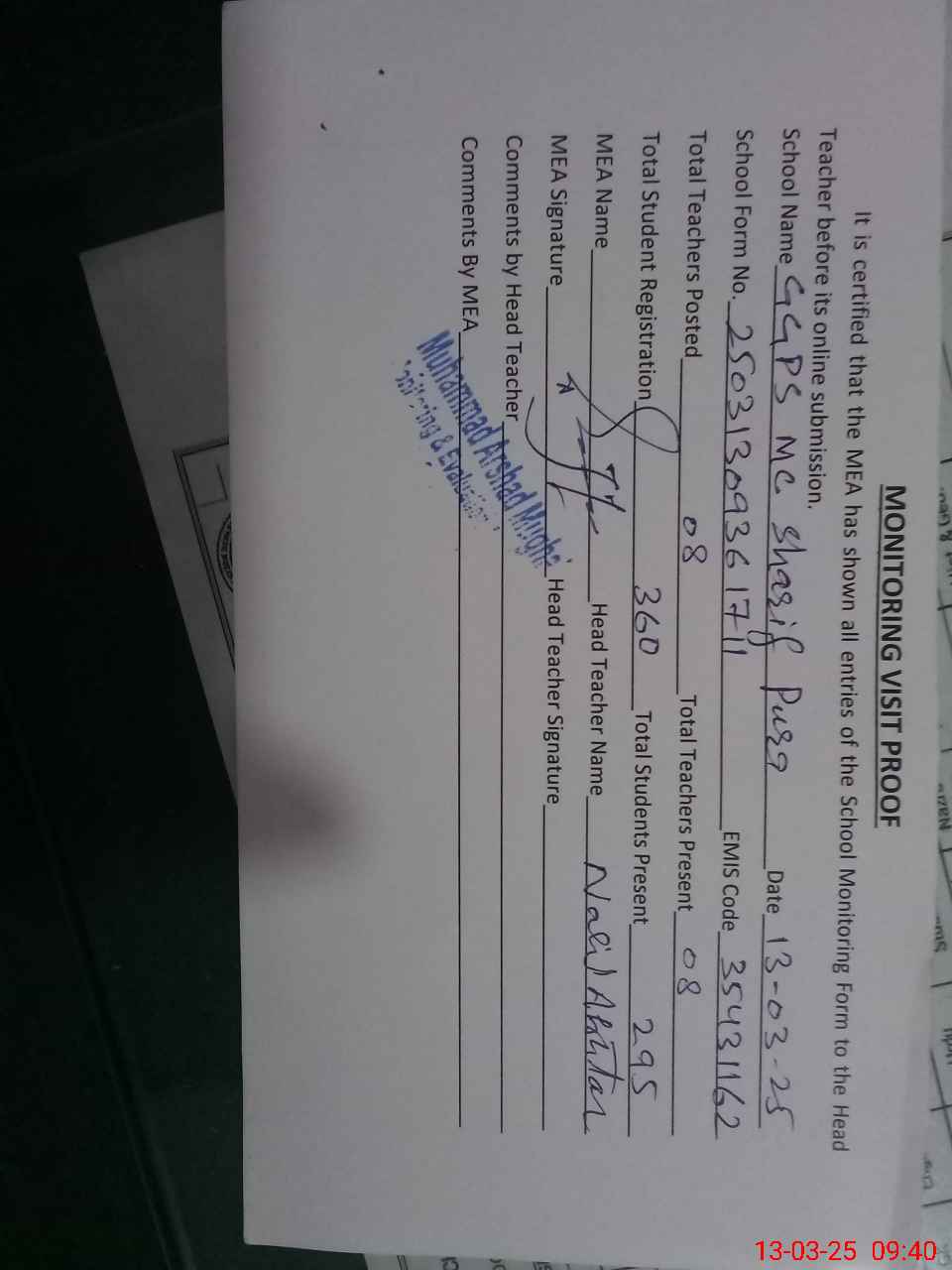 | EMIS Code: 35431162 | Name of School: GGPS MC SHARIF PURA | |||