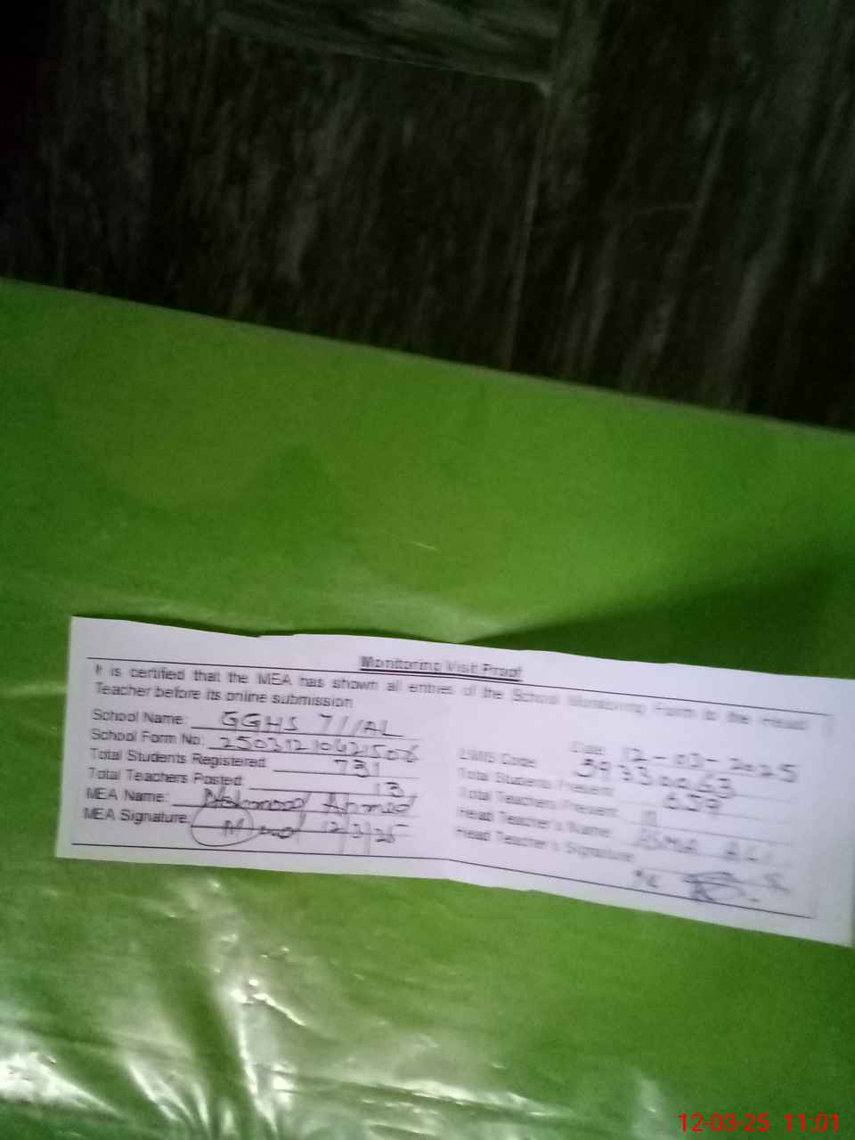 | EMIS Code: 39330063 | Name of School: GGHS CHAK NO. 7/1-AL OKARA | |||