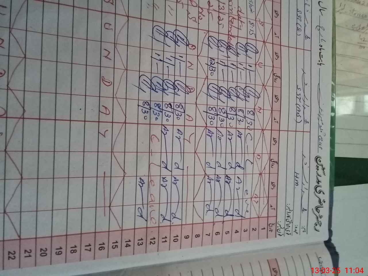 | 35**** | Mu**** Sh**** | SST | Regular | 0 | 0 | 0 | 0 | 0 | 0 | 0 | 0 | 0 | Exam Duty |