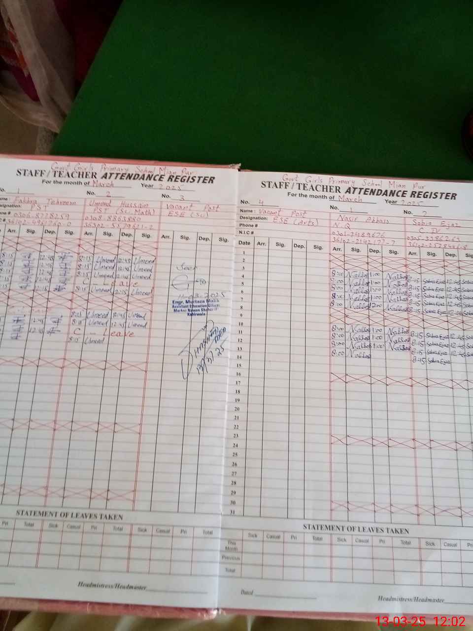| Name: FA**** TE**** Designation: (School Headmaster's/Headmistress's) PST Phone/Cell Number: 03**** |