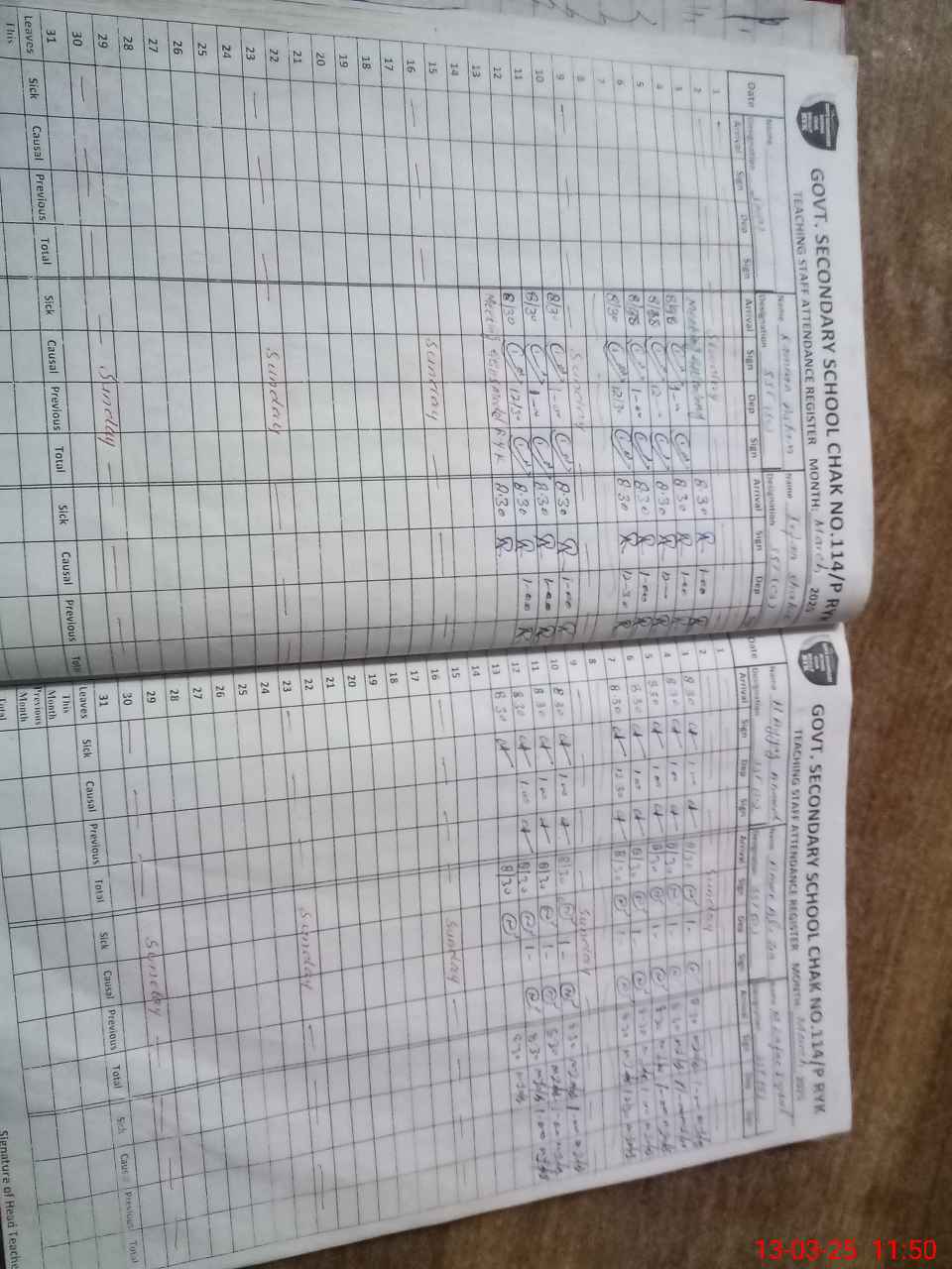 | CNIC | Full Name | Designation | R/C | Absence During Last Calender Month |