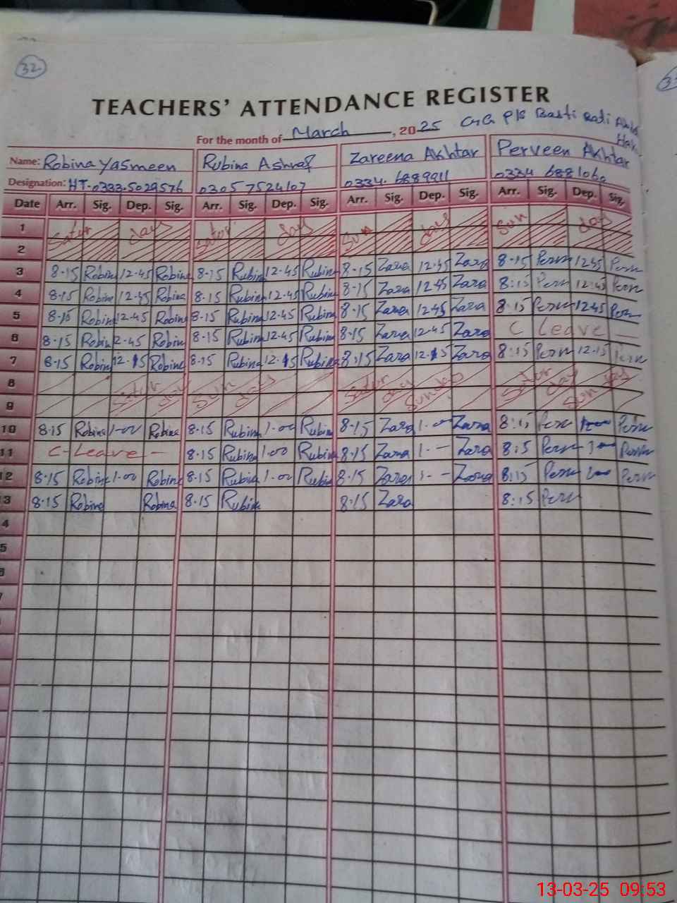 | Name: Ro**** Ya**** Designation: (School Headmaster's/Headmistress's) PST Phone/Cell Number: 03**** |