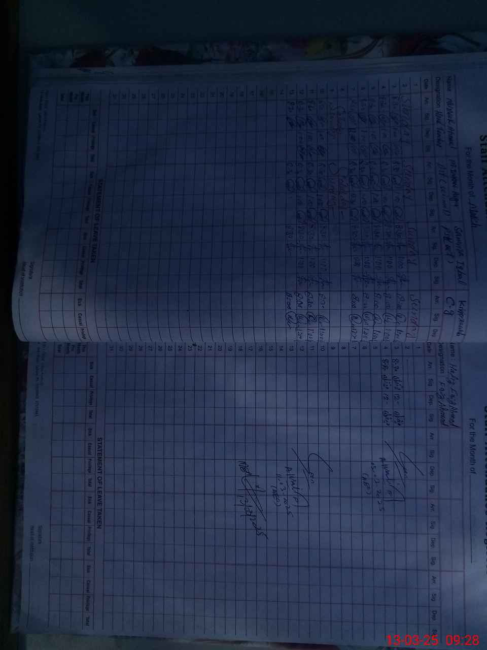 | CNIC | Full Name | Designation | R/C | Absence During Last Calender Month |