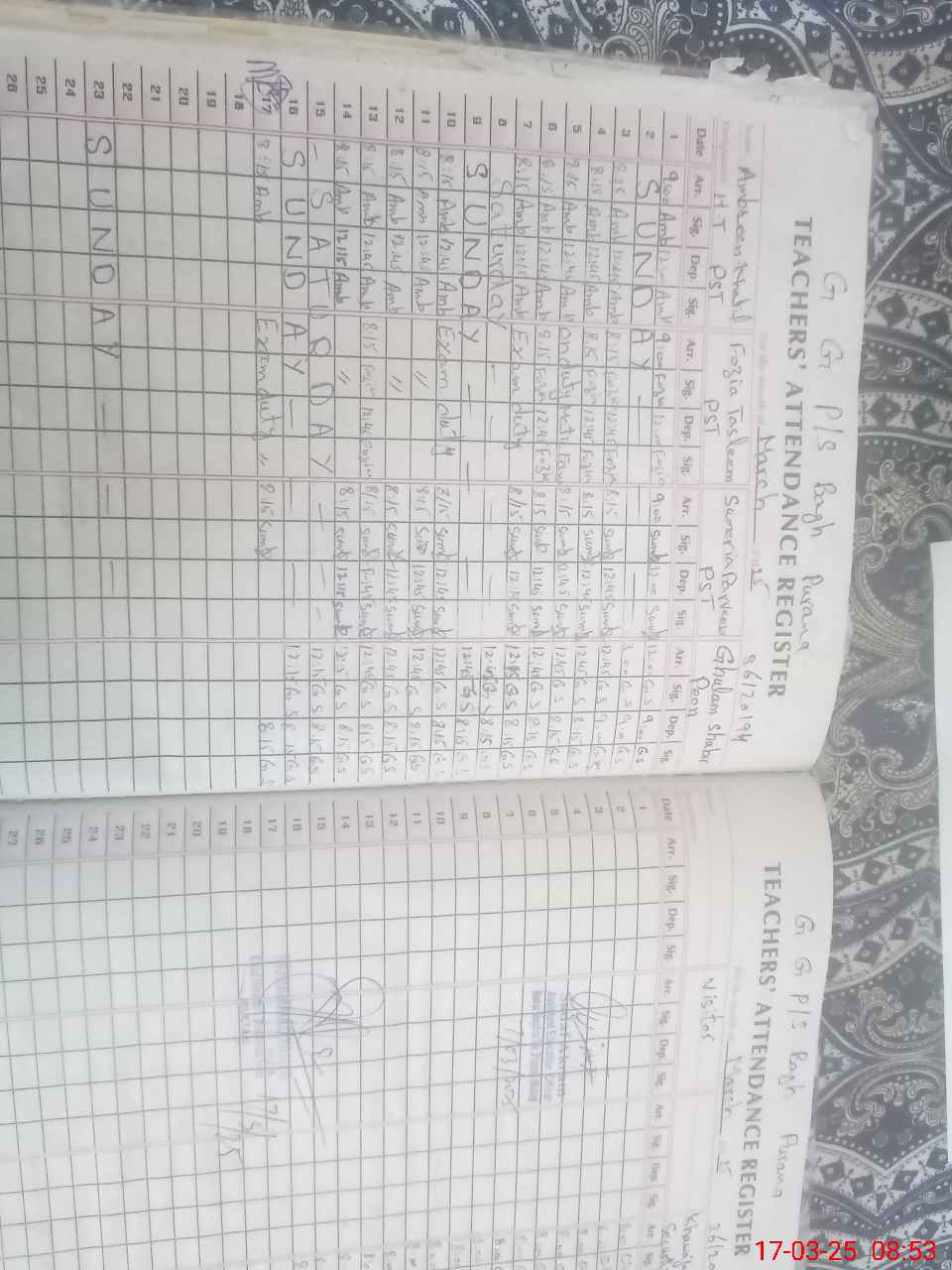 | 36**** | Fo**** Ta**** | PST | Regular | 0 | 0 | 0 | 0 | 0 | 0 | 0 | 0 | 0 | Exam Duty |
