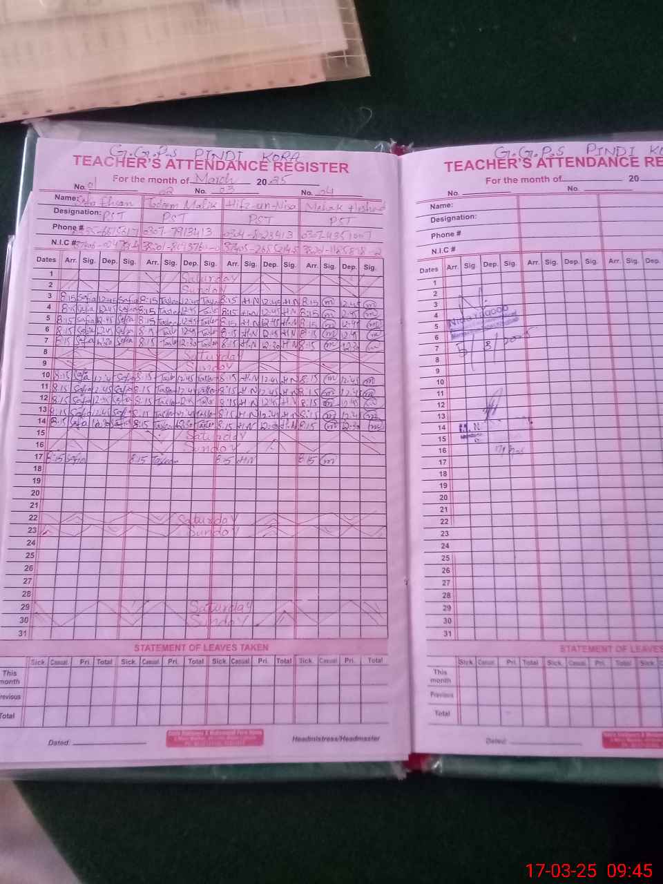| Name: SA**** EH**** Designation: (School Headmaster's/Headmistress's) PST Phone/Cell Number: 03**** |