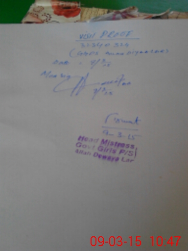 | Name: NA**** SU**** Designation: (School Headmaster's/Headmistress's) PST Phone/Cell Number: 03**** |