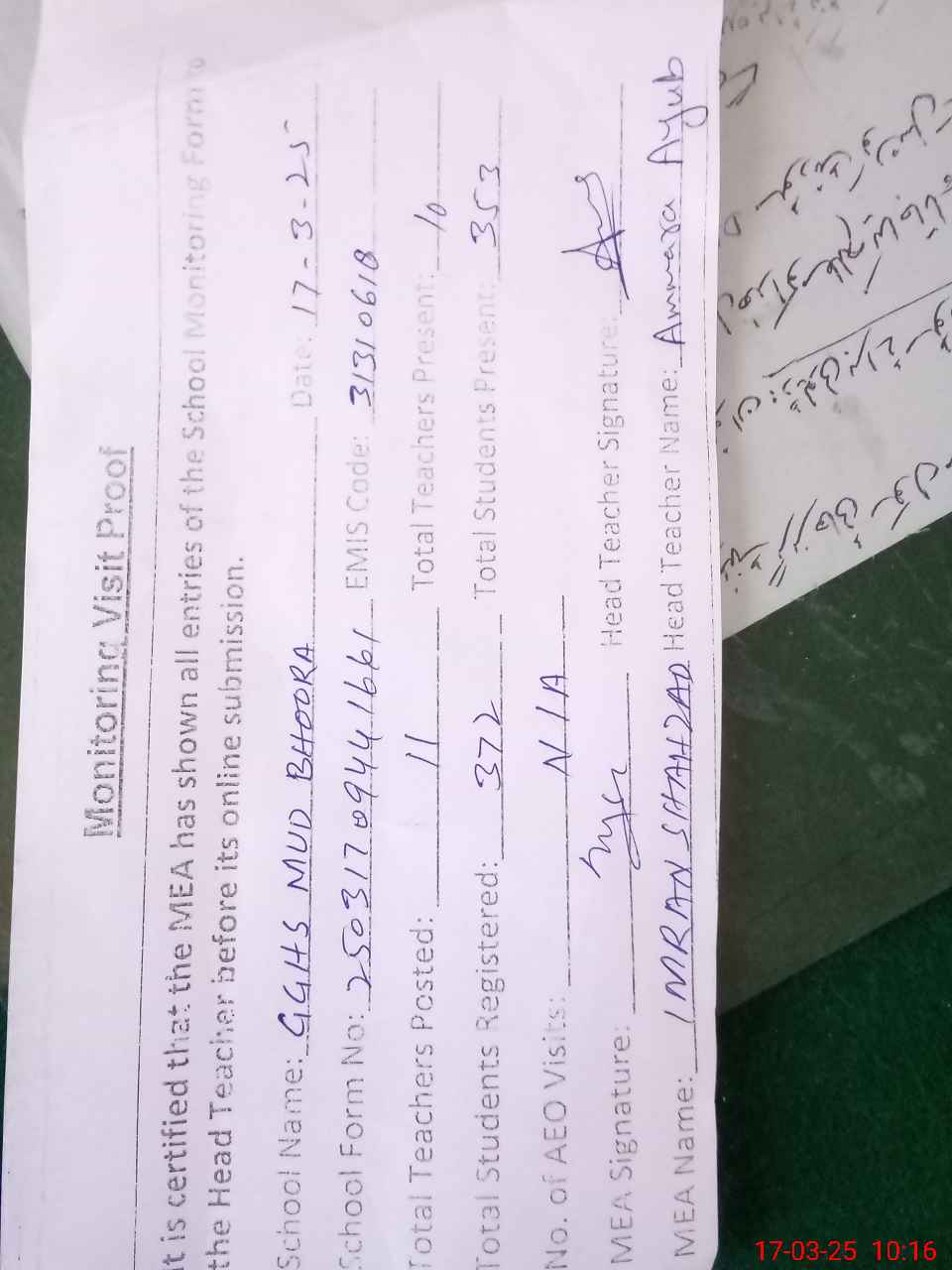 | EMIS Code: 31310618 | Name of School: GGHS MUD BHOORA | |||