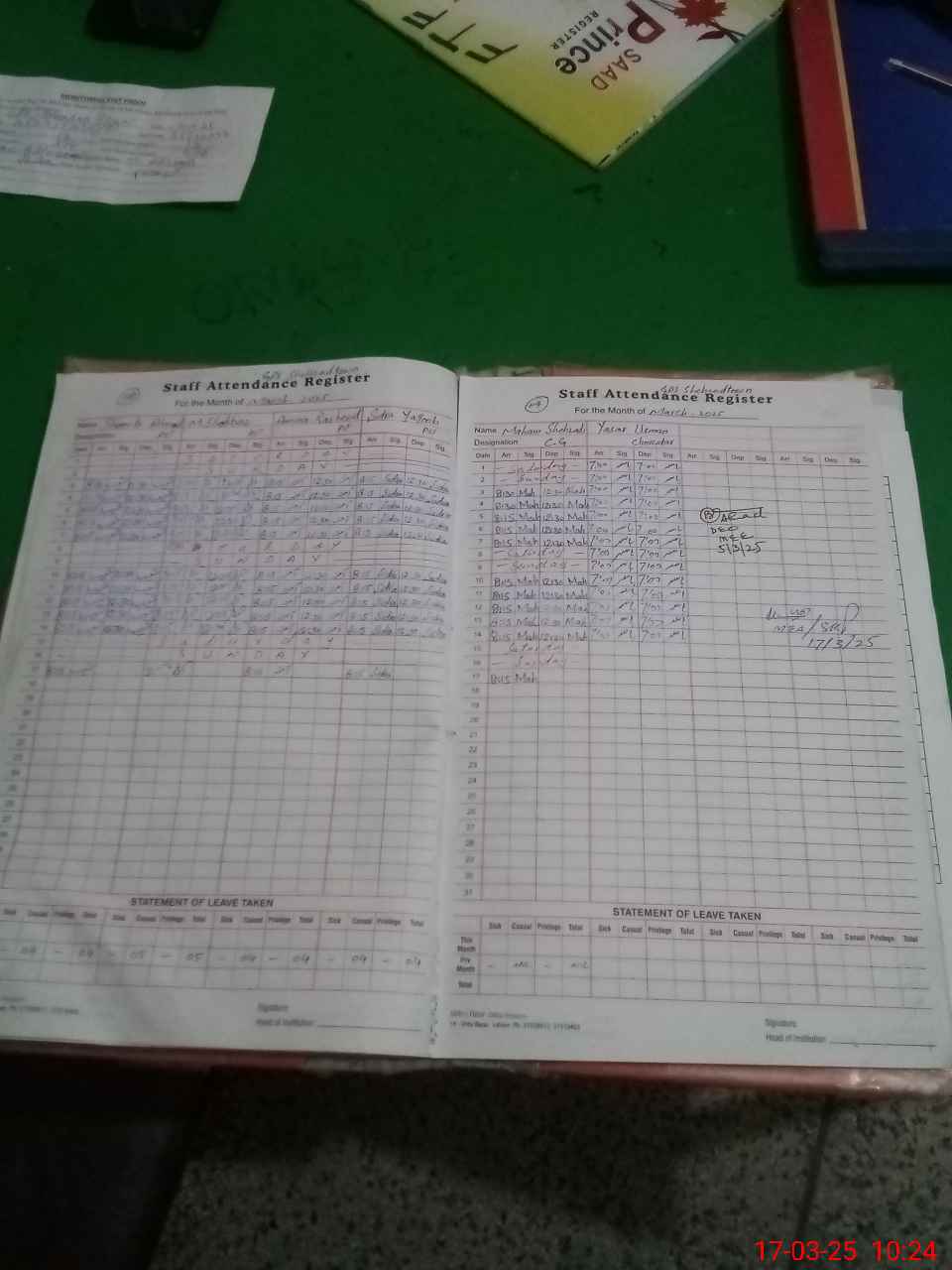 | 33**** | Ya**** Us**** | Chowkidar | 11 | 0 | 4 | 0 | 0 | 0 | 0 | 0 | 11 | Absent (Un-Authorized) | |