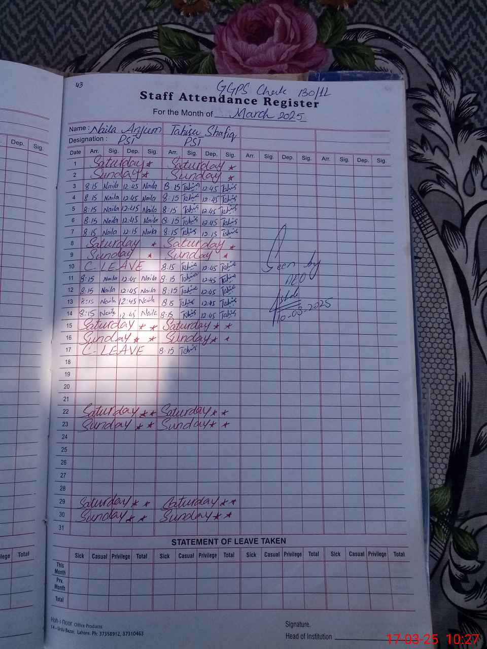 | Name: Na**** An**** Designation: (School Headmaster's/Headmistress's) PST Phone/Cell Number: 03**** |