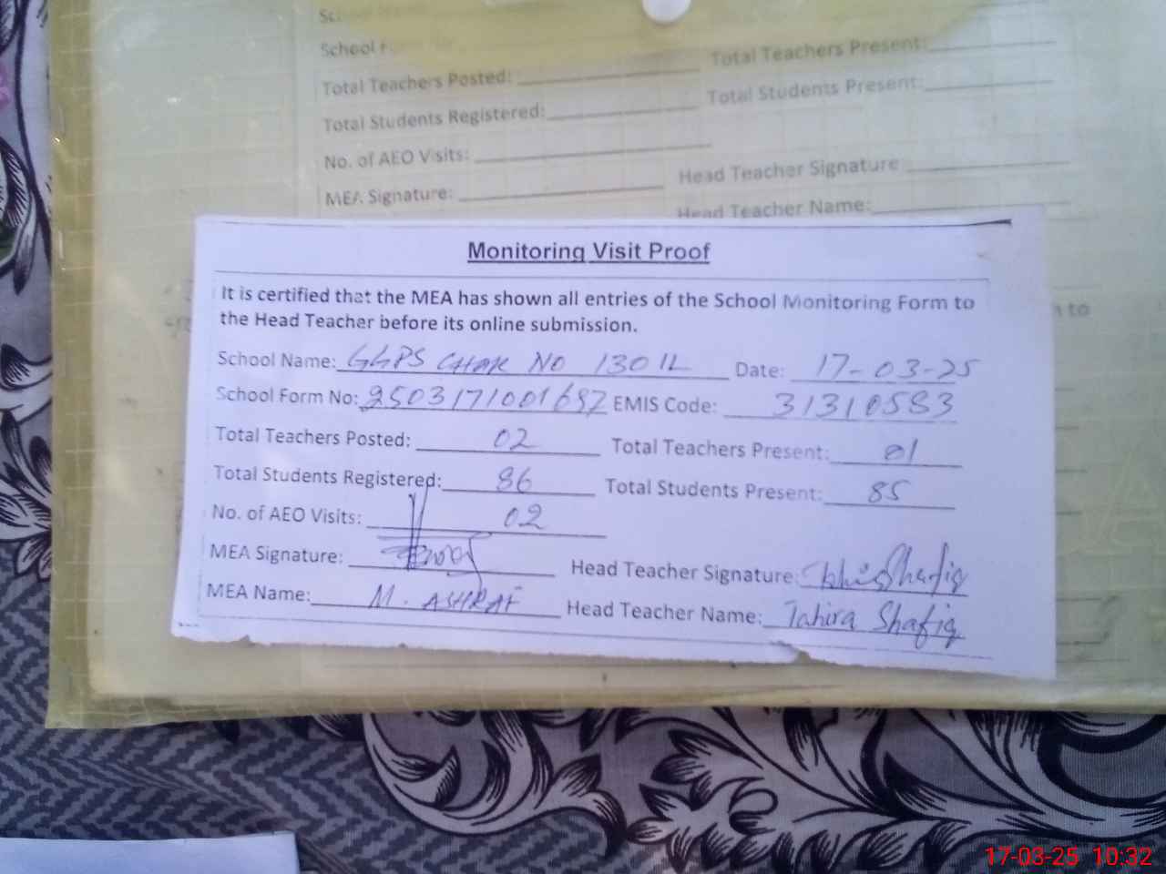 | EMIS Code: 31310583 | Name of School: GGPS CHAK NO.130/1-L | |||