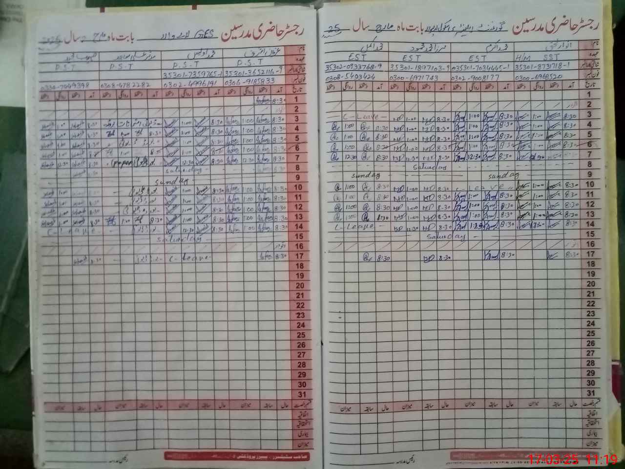 | 35**** | Mu**** Al**** Sa**** | PST | Regular | 0 | 0 | 0 | 0 | 0 | 0 | 0 | 0 | 0 | Exam Duty |