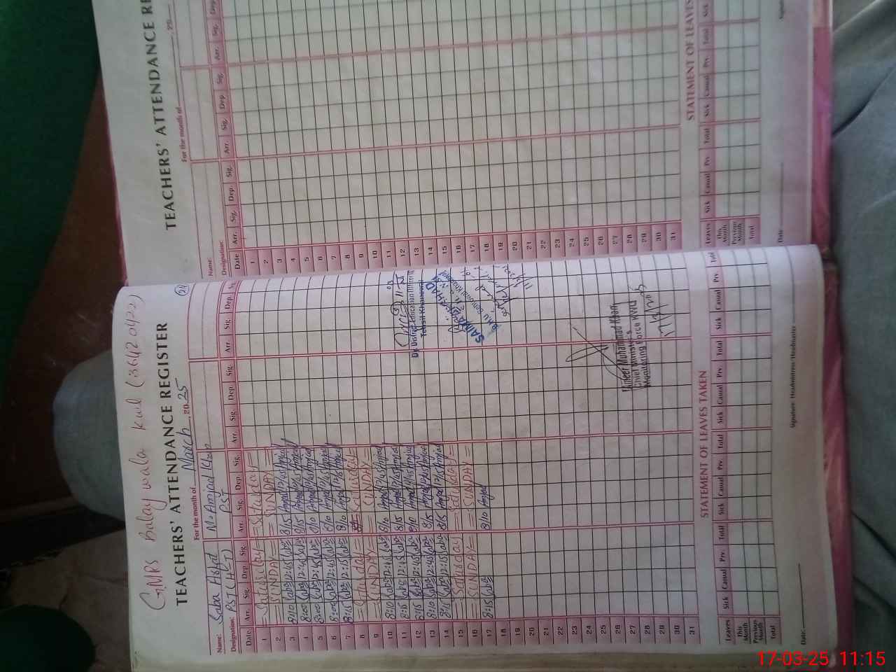 | Name: Sa**** Ar**** Designation: (School Headmaster's/Headmistress's) PST Phone/Cell Number: 03**** |