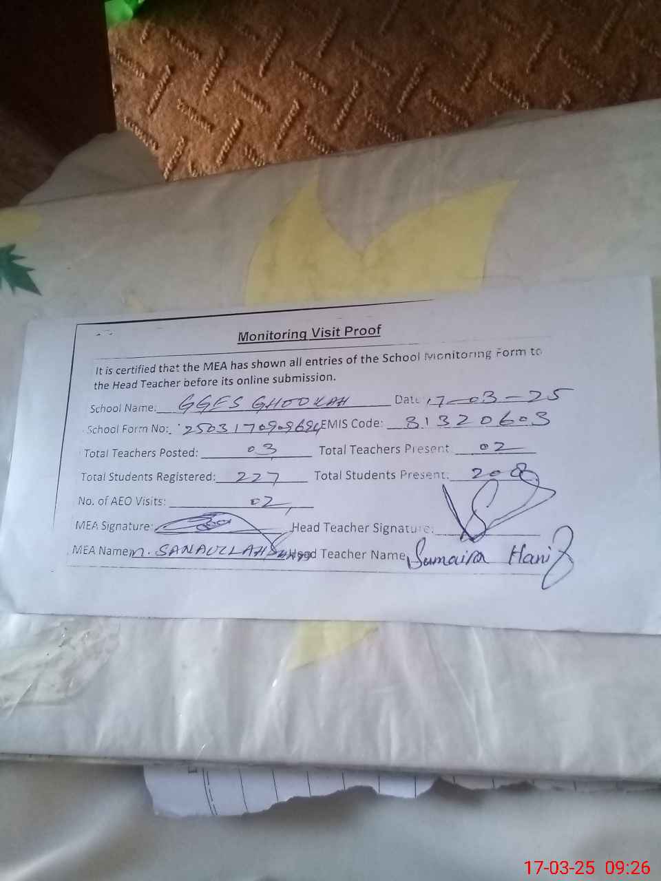 | EMIS Code: 31320603 | Name of School: GGES GHOOKAH | |||