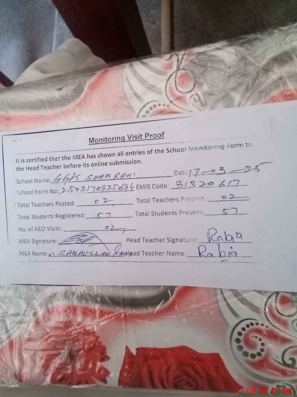 | EMIS Code: 31320617 | Name of School: GGPS SHAKRANI | |||