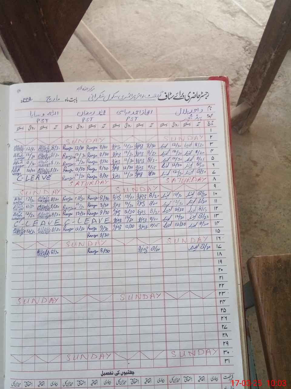| Name: Wa**** Bi**** Designation: (School Headmaster's/Headmistress's) PST/PTC/JV Phone/Cell Number: 03**** |