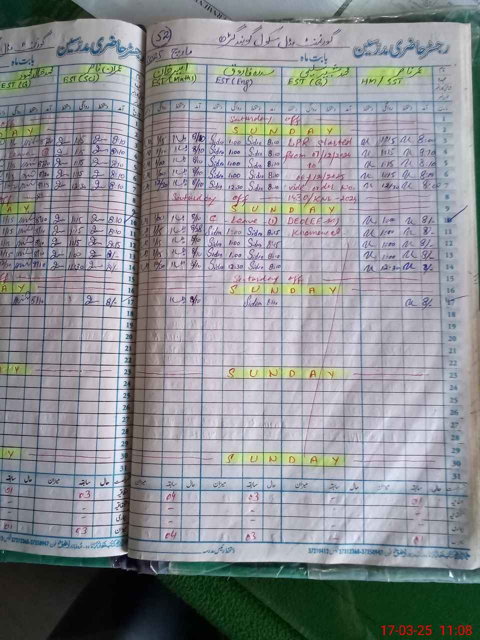 | CNIC | Full Name | Designation | R/C | Absence During Last Calender Month |