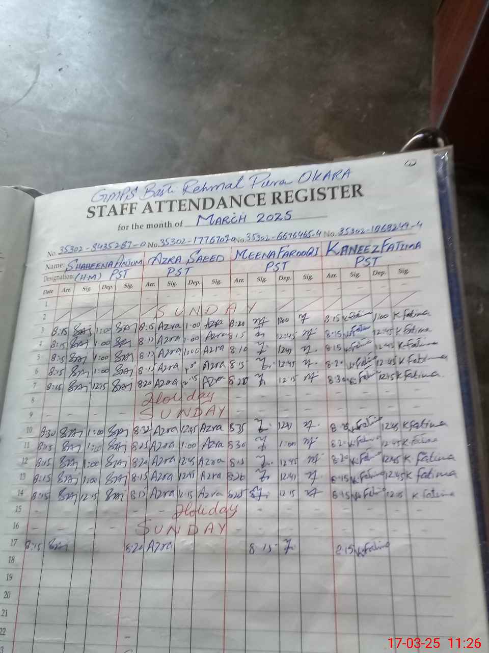 | 42**** | Kh**** Ru**** | PST | Regular | 0 | 0 | 0 | 0 | 0 | 0 | 0 | 0 | 0 | Exam Duty |