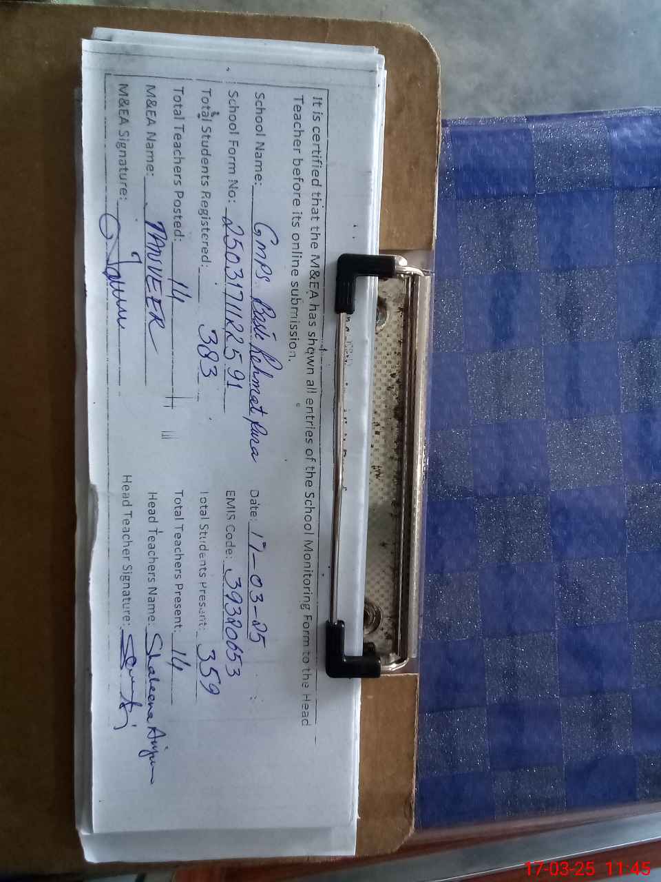 | EMIS Code: 39320653 | Name of School: GMPS BASTI REHMAT PURA | |||