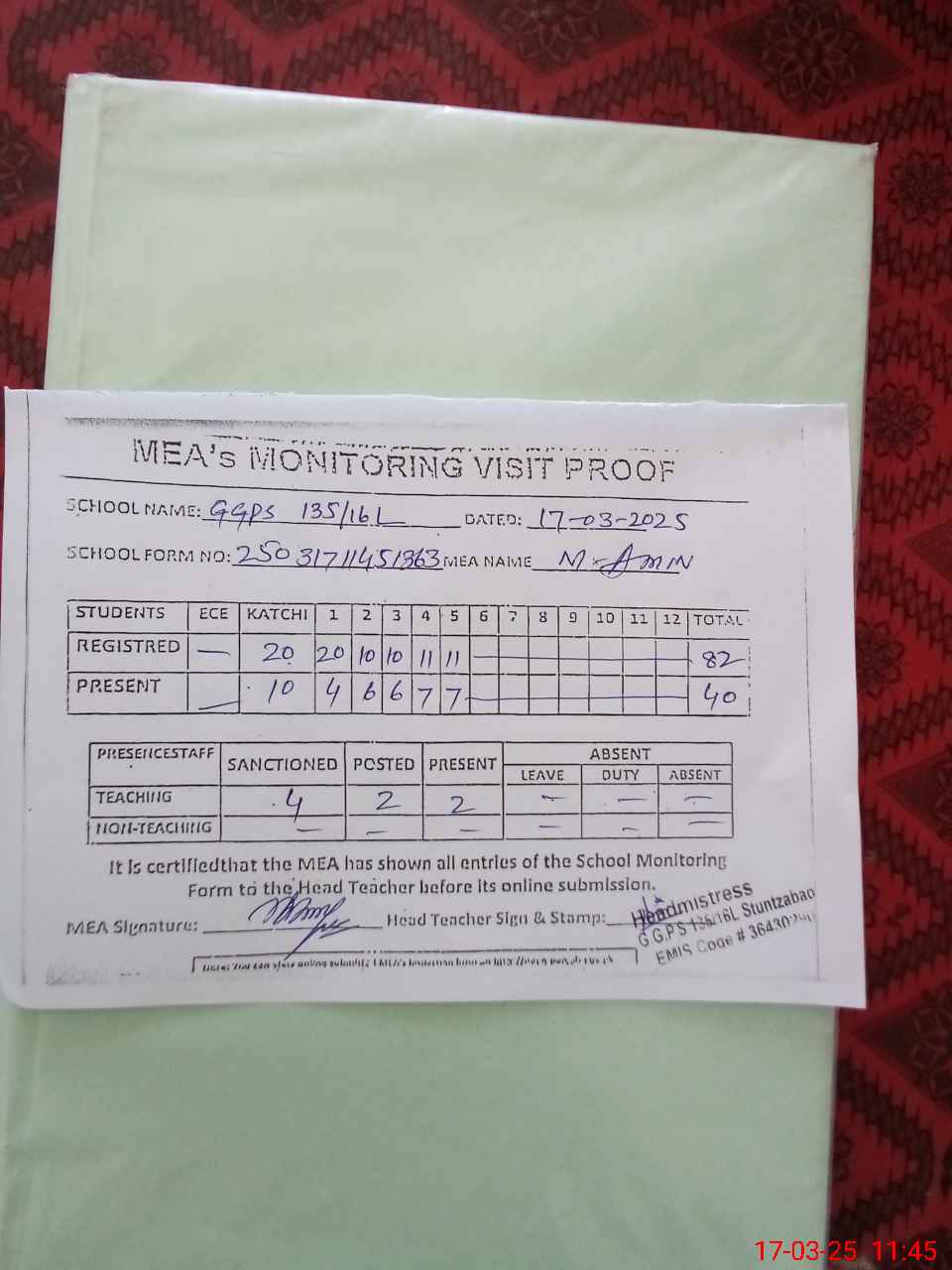 | EMIS Code: 36430290 | Name of School: GGPS 135/16-L, P/O 135/16-L STUNZABAD, MIAN CHANNU | |||