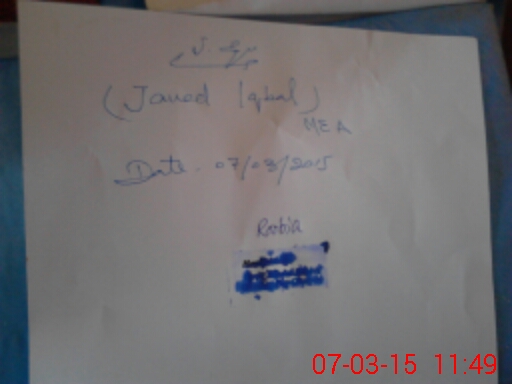 | Monitoring Date: 07-03-2015 | Start Time: 07-03-2015 11:22 AM | End Time: 07-03-2015 11:49 AM | Name of MEA: ZJ**** Iq**** | |